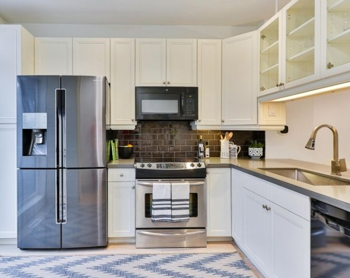 The L-Shape kitchen design refers to the floor plan layout where a corner of large space is utilized and the fitting is done on two corner walls. The L-Shaped kitchen is not difficult to match to any decor and does not constitute any additional restrictions.
