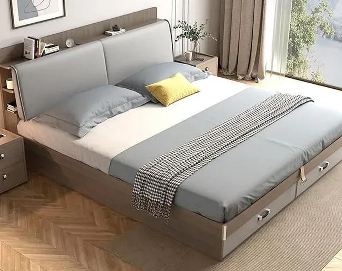 A queen-size bed is one size larger than a full-size bed and one size smaller than a king-size bed. A standard queen-size bed measures 60 inches wide by 80 inches long. In comparison, a full-size bed is 54 inches wide by 75 inches long, and a twin-size bed is 39 inches wide by 75 inches long.